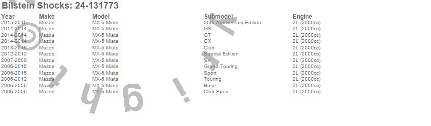 Below is an abreviated list of applications for the B8 Series SP Shock Absorber.