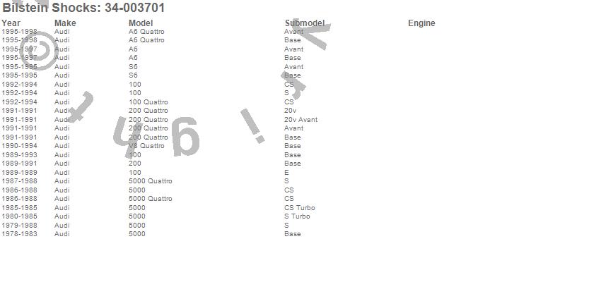 Below is an abreviated list of applications for the B6 Series HD Suspension Strut Cartridge.