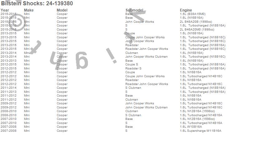 Below is an abreviated list of applications for the B6 Series HD Shock Absorber.