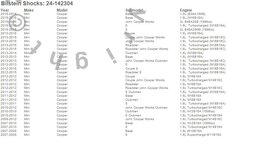 Below is an abreviated list of applications for the B8 Series SP Shock Absorber.