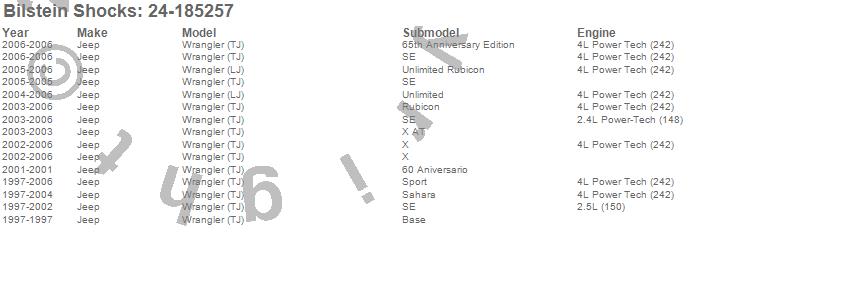 Below is an abreviated list of applications for the 5100 Series Shock Absorber.