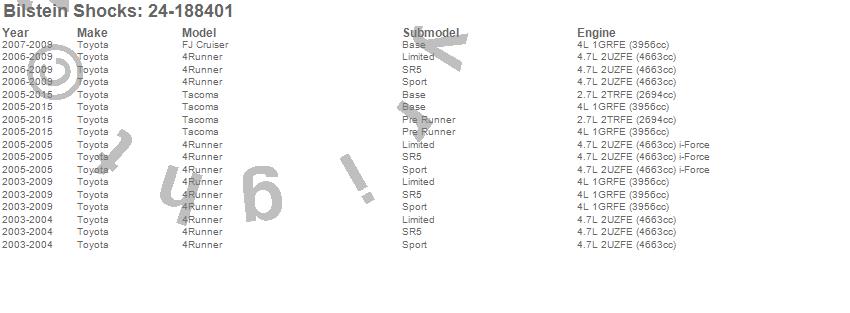 Below is an abreviated list of applications for the 4600 Series Shock Abosorber.