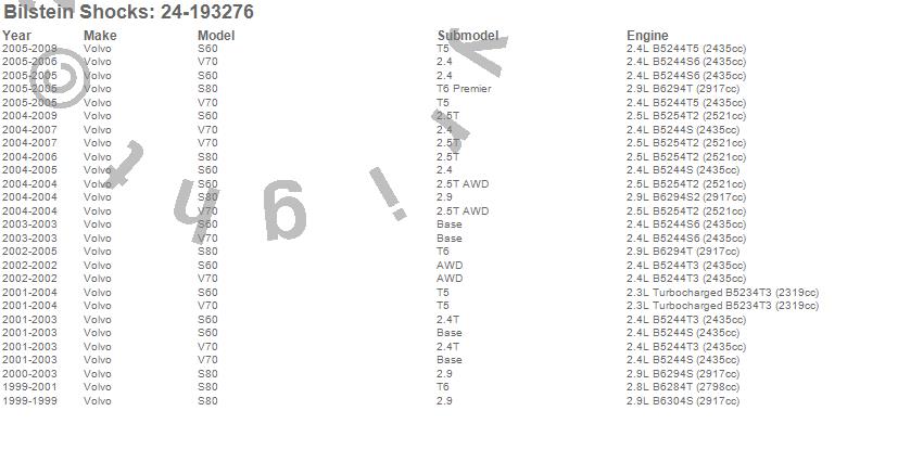 Below is an abreviated list of applications for the B4 Series OE Replacement Shock Absorber.