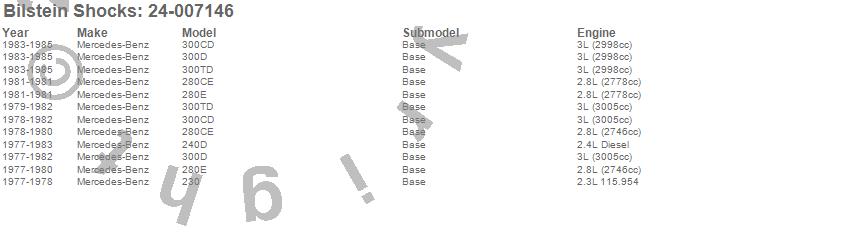 Below is an abreviated list of applications for the B4 Series OE Replacement Shock Absorber.