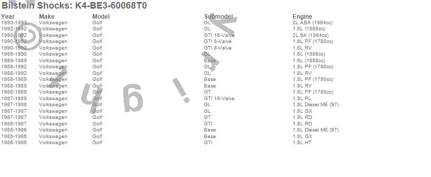 Below is an abreviated list of applications for the Motorsports Shock Absorber.