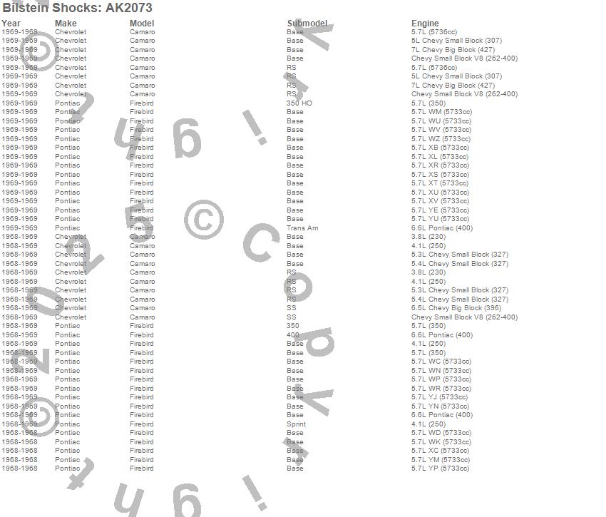 Below is an abreviated list of applications for the B6 Series HD Shock Absorber.