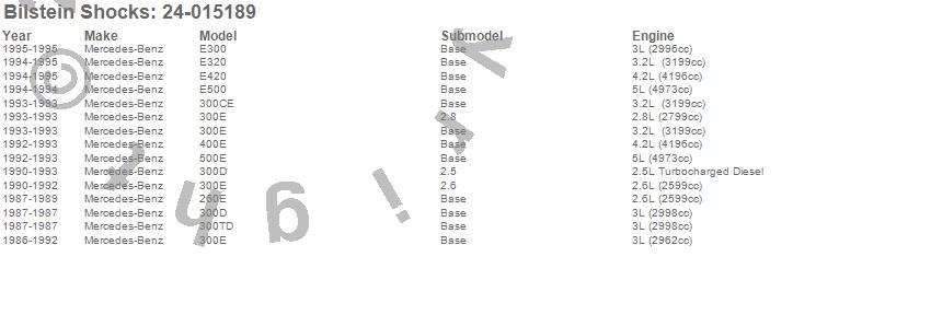 Below is an abreviated list of applications for the B4 Series OE Replacement Shock Absorber.