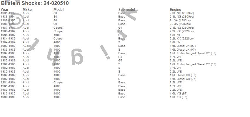 Below is an abreviated list of applications for the B6 Series HD Shock Absorber.