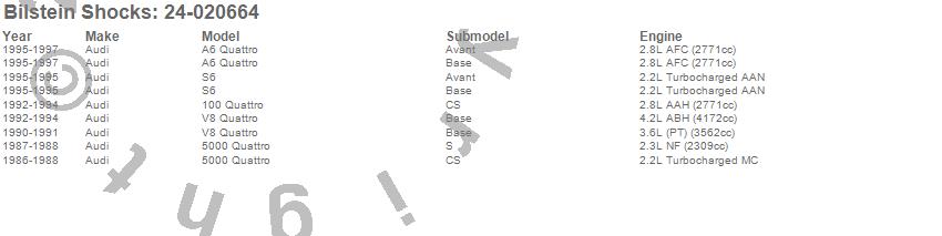 Below is an abreviated list of applications for the B8 Series SP Shock Absorber.