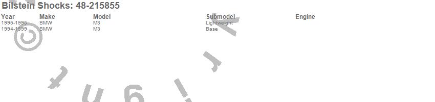 Below is an abreviated list of applications for the Bilstein Clubsport Series Lowering Kit.