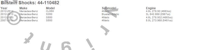 Below is an abreviated list of applications for the B4 Series OE Replacement Air Spring.