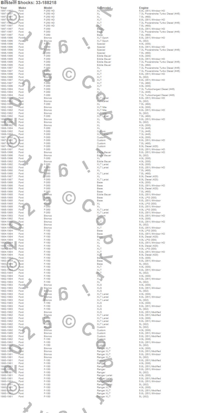 Bronco, F-150, F-350, Ford, 1997, 1996, 1995, 1994, 1993, 1992, 1991, 1990, 1989, 1988, 1987, 1986, 1985, 1984, 1983, 1982 more…