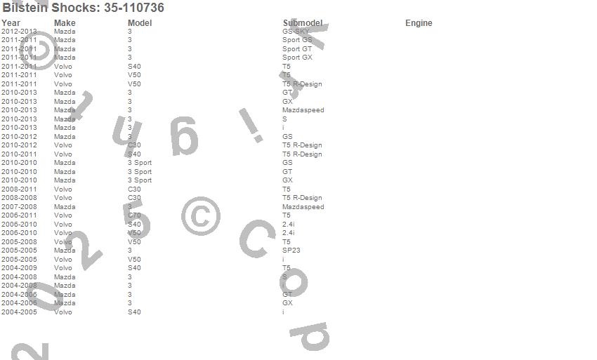 3, 3 Sport, C30, C70, S40, V50, Mazda, Volvo, 2013, 2012, 2011, 2010, 2009, 2008, 2007, 2006, 2005, 2004 more…