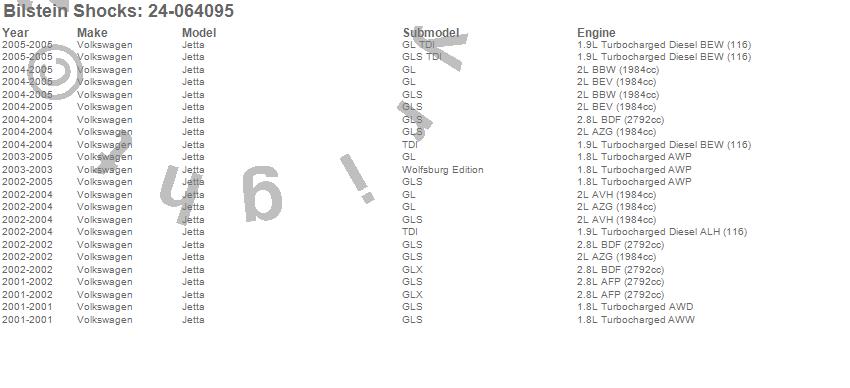 Below is an abreviated list of applications for the B6 Series HD Shock Absorber.