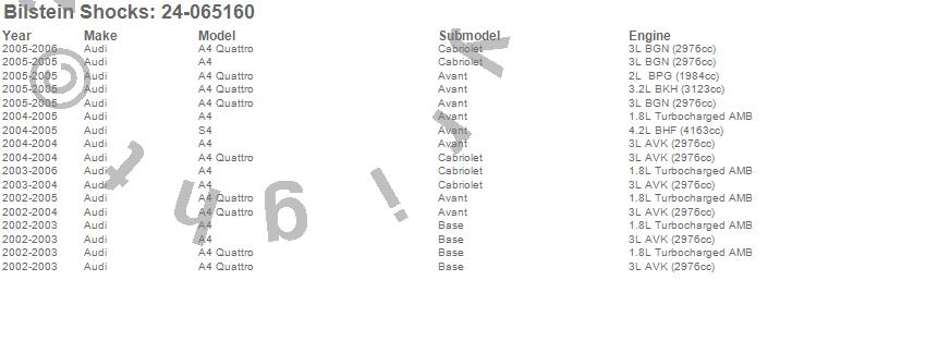 Below is an abreviated list of applications for the B8 Series SP Shock Absorber.