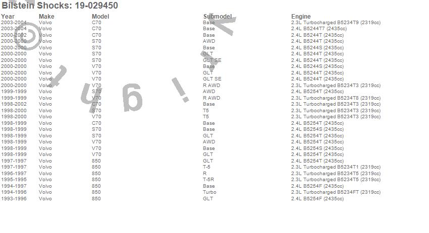 Below is an abreviated list of applications for the B4 Series OE Replacement Shock Absorber.