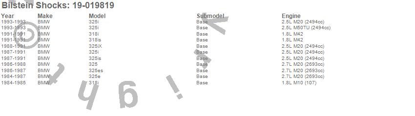 Below is an abreviated list of applications for the B4 Series OE Replacement Shock Absorber.