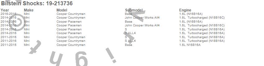 Below is an abreviated list of applications for the B4 Series OE Replacement Shock Absorber.