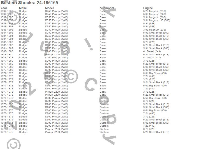 Below is an abreviated list of applications for the 4600 Series Shock Abosorber.