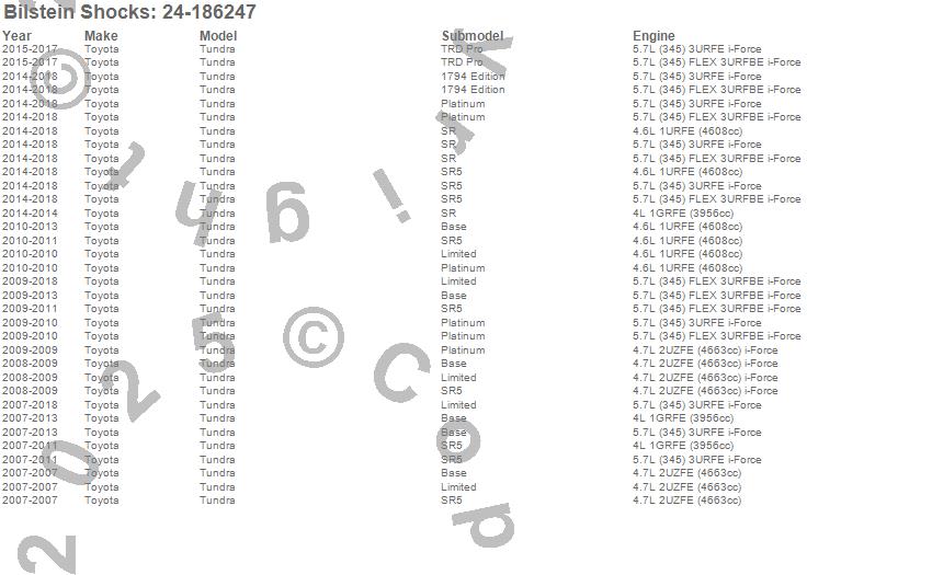 Below is an abreviated list of applications for the 4600 Series Shock Abosorber.