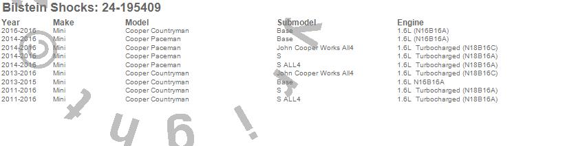 Below is an abreviated list of applications for the B6 Series HD Shock Absorber.
