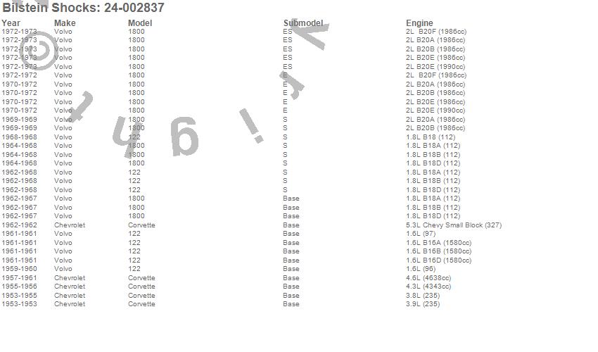 Below is an abreviated list of applications for the B6 Series HD Shock Absorber.