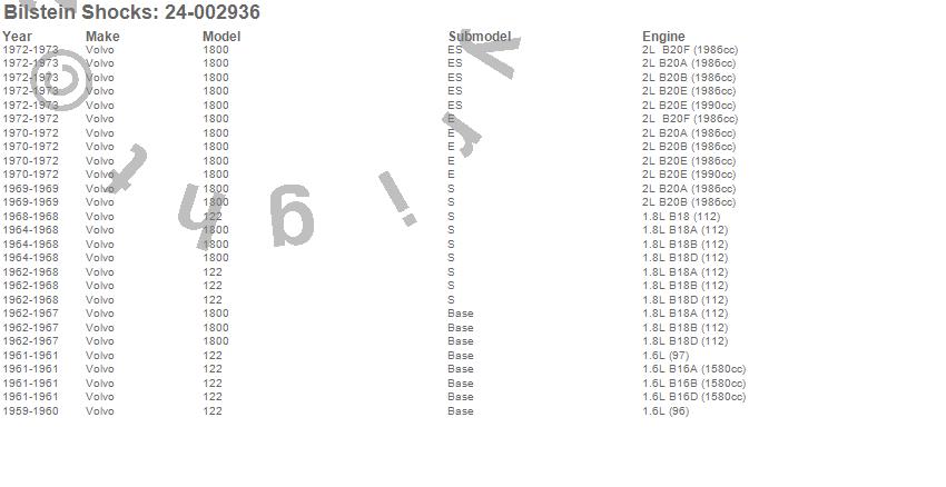 Below is an abreviated list of applications for the B6 Series HD Shock Absorber.