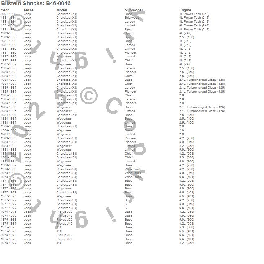 Below is an abreviated list of applications for the 4600 Series Shock Abosorber.