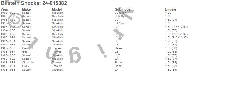 Below is an abreviated list of applications for the 4600 Series Shock Abosorber.