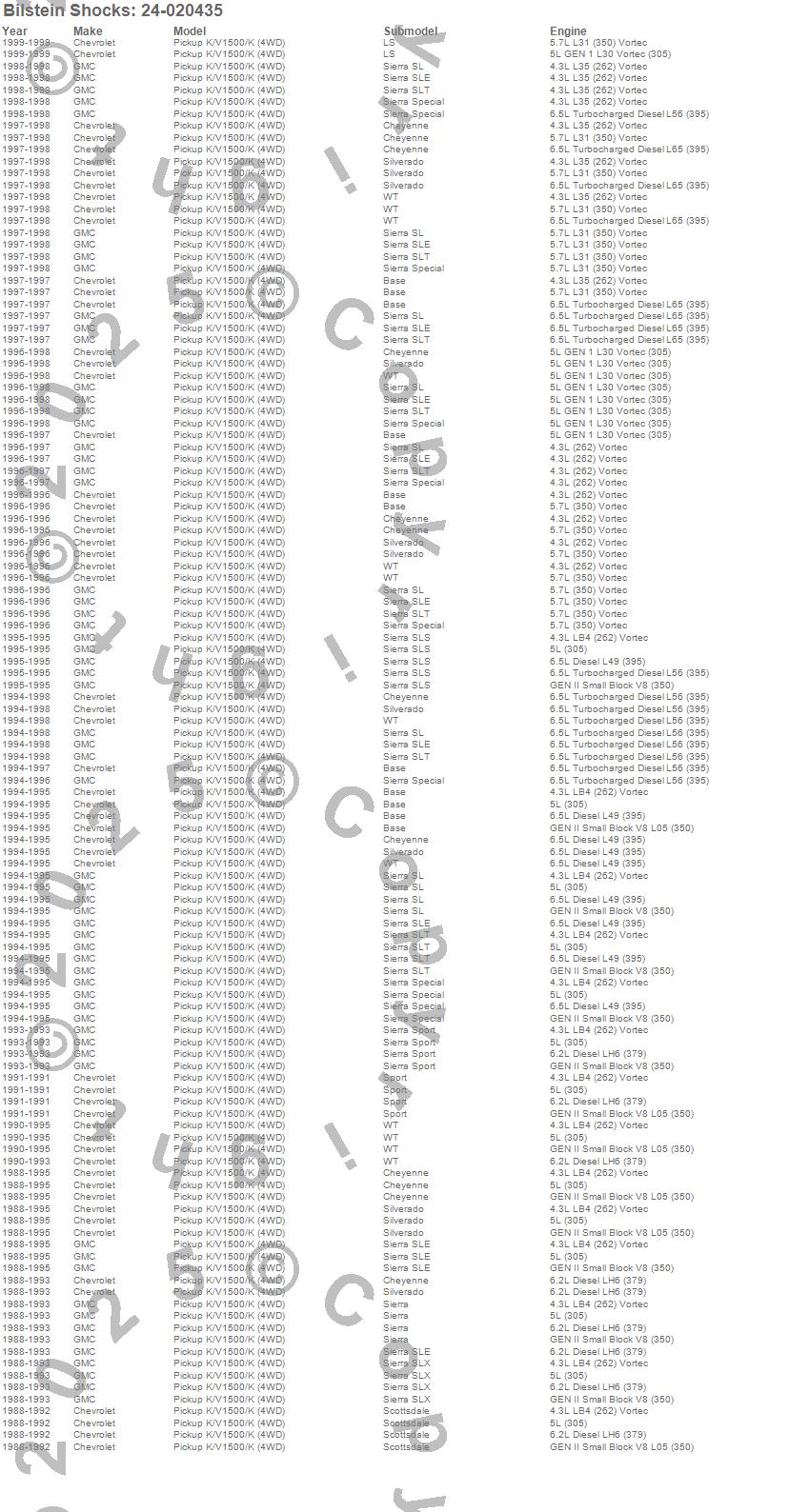 Below is an abreviated list of applications for the 4600 Series Shock Abosorber.
