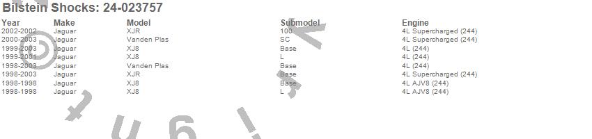 Below is an abreviated list of applications for the B4 Series OE Replacement Shock Absorber.
