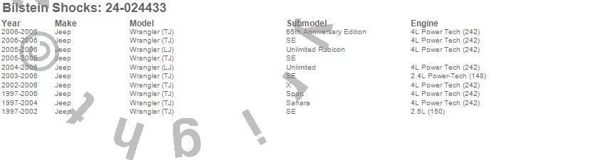 Below is an abreviated list of applications for the 4600 Series Shock Abosorber.