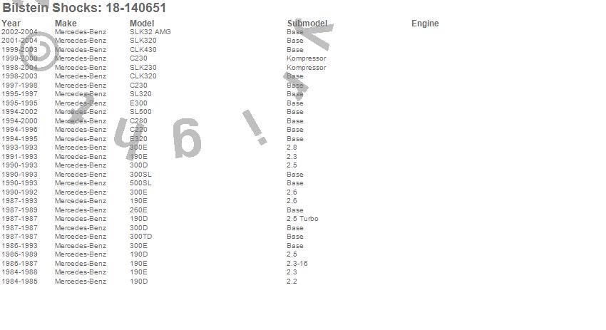 190D, 190E, 260E, 300D, 300E, 300SL, 300TD, 500SL, C220, C230, C280, CLK320, CLK430, E300, E320, SL320, SL500, SLK230, SLK32 AMG, SLK320 more…