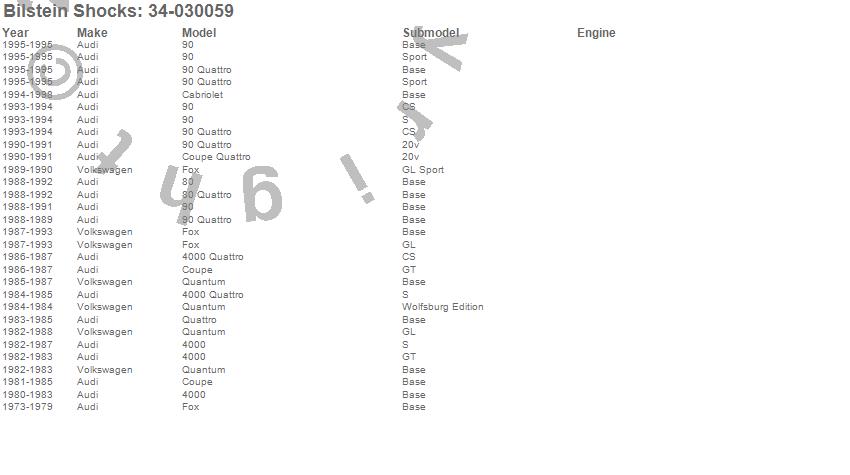 Below is an abreviated list of applications for the B6 Series HD Suspension Strut Cartridge.