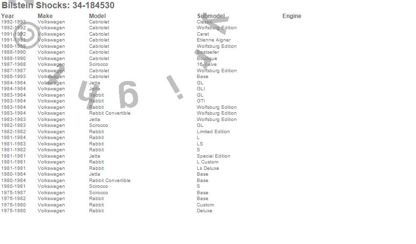 Below is an abreviated list of applications for the B8 Series SP Suspension Strut Cartridge.