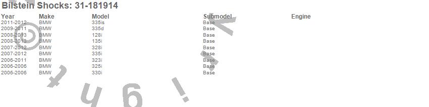 Below is an abreviated list of applications for the B6 Series 10 Way Adjustable Suspension Strut Assembly.
