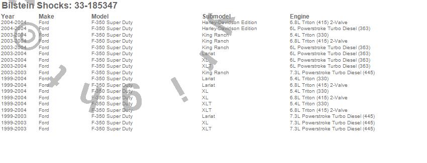 Below is an abreviated list of applications for the 4600 Series Shock Abosorber.
