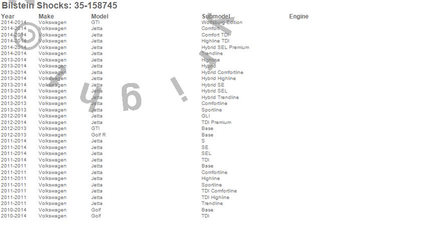 Below is an abreviated list of applications for the B8 Series SP Suspension Strut Assembly.