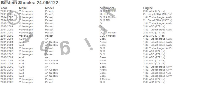 Below is an abreviated list of applications for the B6 Series HD Shock Absorber.