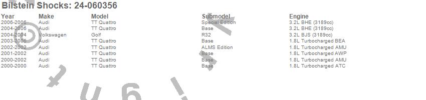 Below is an abreviated list of applications for the B8 Series SP Shock Absorber.