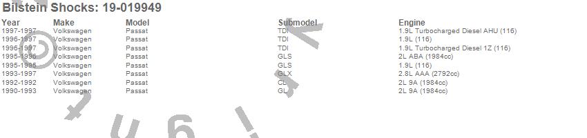 Below is an abreviated list of applications for the B4 Series OE Replacement Shock Absorber.
