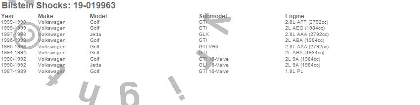 Below is an abreviated list of applications for the B4 Series OE Replacement Shock Absorber.