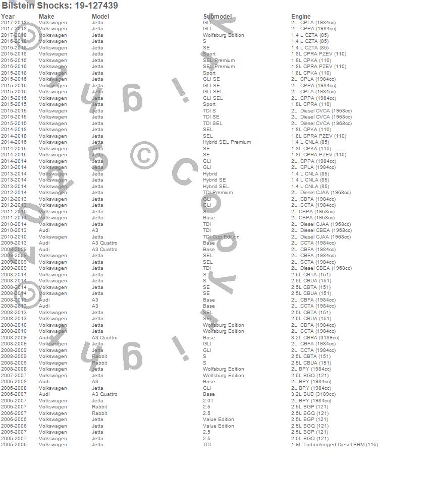 Below is an abreviated list of applications for the B4 Series OE Replacement Shock Absorber.