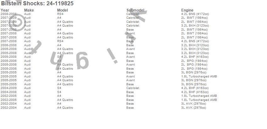 Below is an abreviated list of applications for the B8 Series SP Shock Absorber.
