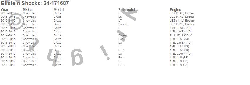 Below is an abreviated list of applications for the B6 Series HD Shock Absorber.