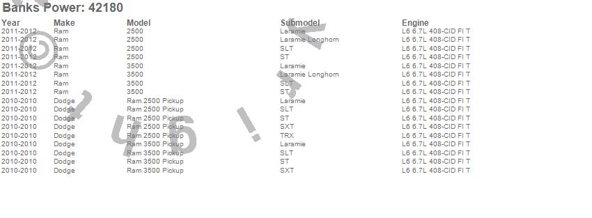 Below is an abreviated list of applications for the Banks Ram-Air Intake System.