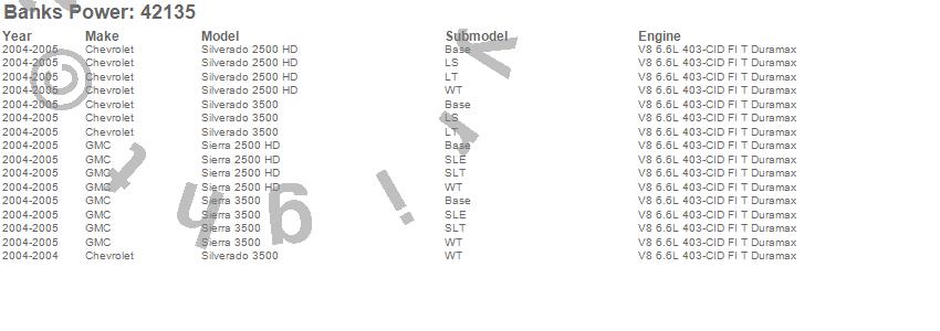 Below is an abreviated list of applications for the Banks Ram-Air Intake System.