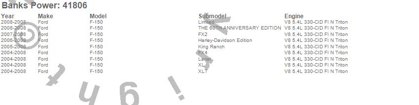 Below is an abreviated list of applications for the Banks Ram-Air Intake System.