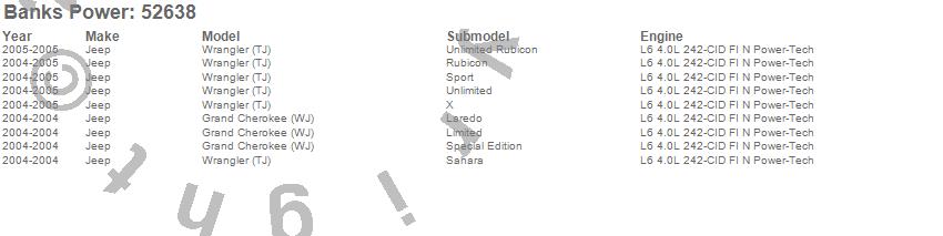 Below is an abreviated list of applications for the Monster Muffler.