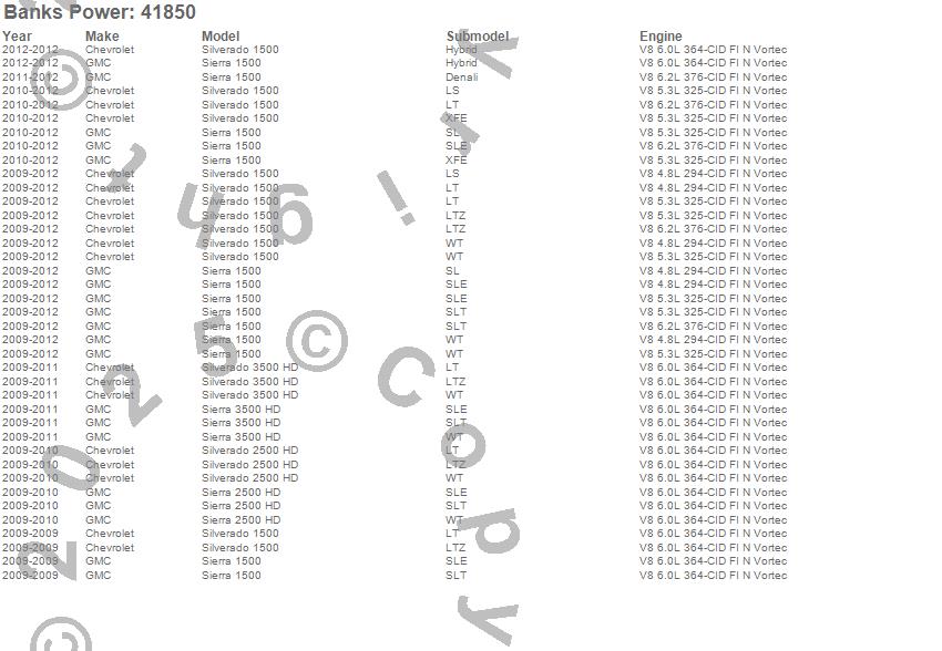 Below is an abreviated list of applications for the Banks Ram-Air Intake System.